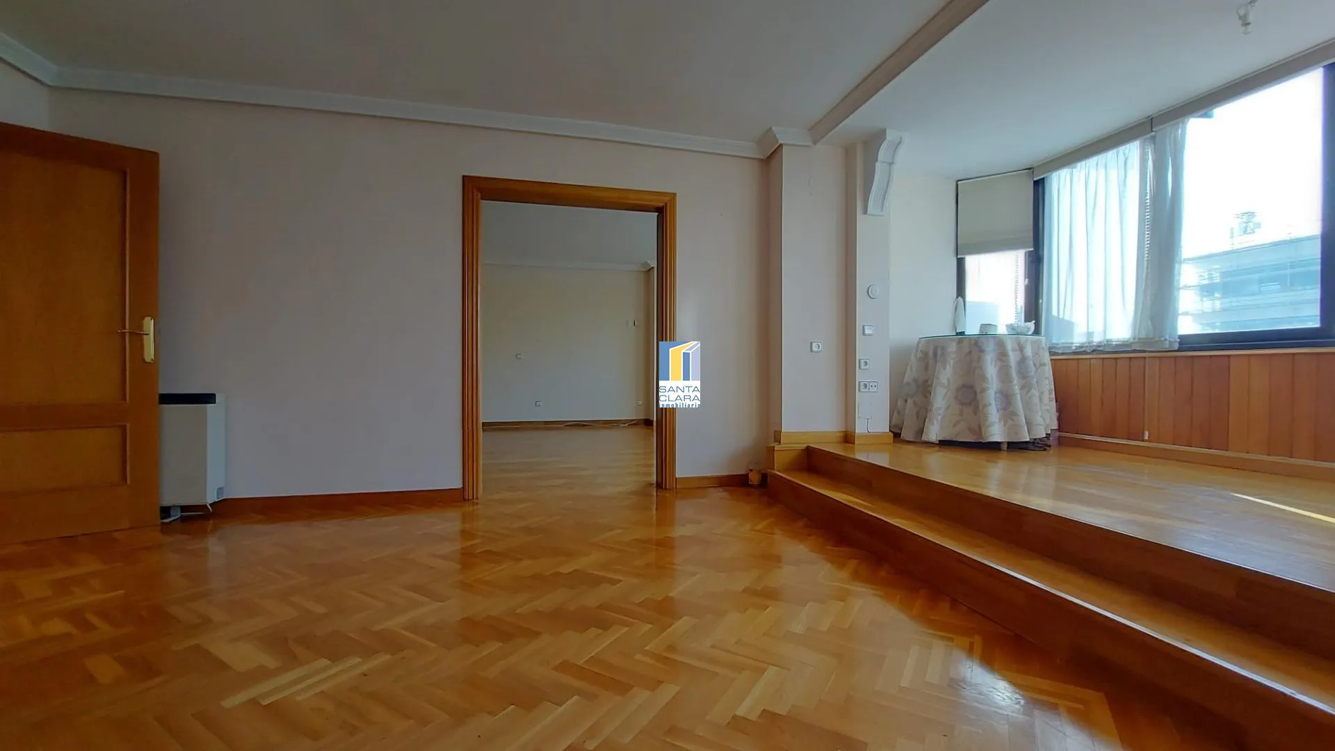 PISO EN VENTA CON 4 DORMITORIOS, MIRADOR, 3 BAÑOS, 2 TERRAZAS Y PLAZA DE GARAJE EN CALLE SANTA CLARA, ZAMORA. Si lo que estás buscando es un piso amplio, en pleno centro de Zamora, con buenas vistas, plaza de garaje y con todo lo necesario a la puerta de casa, no lo pienses más. Se trata de un piso de 160 m2. de superficie que se encuentra distribuido en un amplio y luminoso salón con un mirador con vistas a Santa Clara, 4 dormitorios con armarios empotrados de los cuales el dormitorio principal cuenta con acceso a un balcón con vistas a la calle y baño en suite con un amplio plato de ducha, 2 baños con plato de ducha, aseo y una amplia cocina independiente y amueblada con acceso a una terraza acristalada. El inmueble dispone además de plaza de garaje en el mismo edificio. La propiedad se encuentra en buen estado y lista para entrar a vivir. Tiene carpintería exterior de aluminio, suelo de parquet en espiga, carpintería interior de madera, aire acondicionado, agua caliente por termo eléctrico y calefacción por acumuladores eléctricos aunque el edificio también dispone de preinstalación de gas natural. La cuota de la comunidad es de 100€ mensuales. El edificio está adaptado a personas con movilidad reducida y dispone de 2 ascensores Extras: acceso pmr, agua, aire acondicionado, armarios empotrados, ascensor, balcón, calefacción, luminoso, luz, terraza, videoportero, árboles, céntrico, colegios, parques, supermercados, vistas despejadas, zona de paso, zonas infantiles, garaje incluido, parking incluido. En el precio de venta fijado no están incluidos los impuestos. No lo pienses más y ponte en contacto con nosotros para concertar una visita. ¿Quieres calcular la cuota de la hipoteca? Ahora puedes hacerlo con nuestro simulador que encontrarás al final de la página. BUSCAMOS STOCK DE INMUEBLES PARA SATISFACER NUESTRA AMPLIA CARTERA DE CLIENTES. Nuestra empresa está formada por un equipo profesional joven y dinámico con un objetivo común: satisfacer las demandas de nuestros clientes. La sociedad tiene por objeto: la promoción, compra, venta y construcción de toda clase de bienes inmuebles urbanos y rústicos. Una agencia joven con profesionales expertos. Disponemos de una amplia oferta inmobiliaria de viviendas nuevas y 2ª mano, chalets y fincas por toda la provincia, alquileres y traspasos, todo ello con las mejores garantías económicas del mercado.